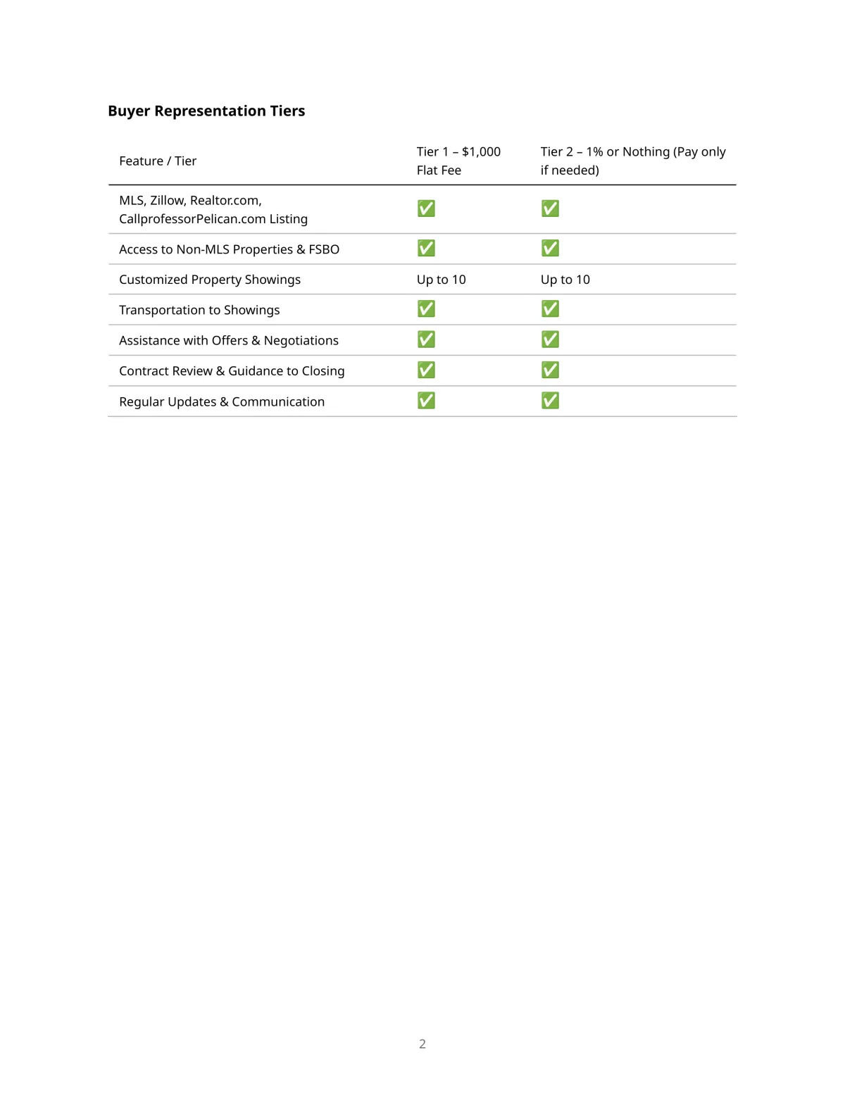 Same services as Flat Fee Buyer Representation: MLS access, off-market search, showings, negotiation, and closing support